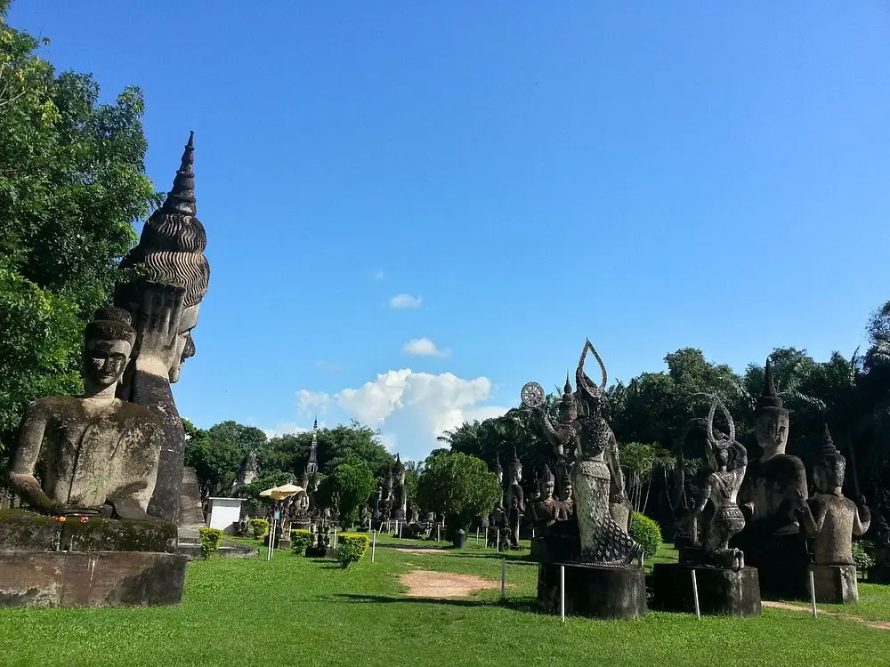 비엔티안 부다파크는 불교와 힌두교 조각상이 가득한 야외 조각공원으로, 비엔티안 근교에서 가장 독특한 분위기의 관광지